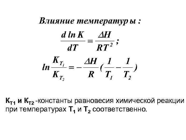 КТ 1 и КТ 2 -константы равновесия химической реакции при температурах Т 1 и Т 2 соответственно.