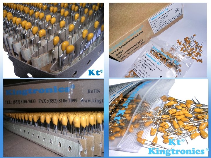 Kingtronics Brief Introduction Kingtronics are ISO 9001: 2008 certified manufacturer in mainland China since 1990, with two factories, around 850 workers. In the past 20 years, Kingtronics produce high quality trimming potentiometer, multilayer ceramic capacitor, dipped tantalum capacitor and diode and bridge rectifier, sell at very attractive prices, under our registered brand Kingtronics, with three trademarks “ Kt, Kingtronics” All our products are Ro. HS compliant, and our bridge rectifier have UL approval. Our main market is in Europe, North & South America, and South Africa. You are Important to Us! – We are willing to support you with the best. Here, Kingtronics, good quality, competitive prices and excellent service, looking forward to your business chance.