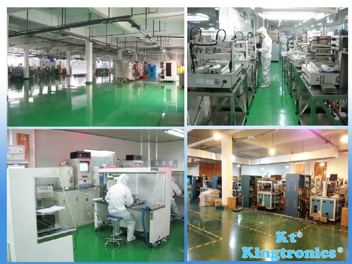 Kingtronics History Ø 1990 Kingtronics established first factory producing trimming potentiometer in Chengdu. Ø 1995 Kingtronics set up sales office in Dongguan, Guangdong Ø 1998 HK warehouse center set up Ø 1999 set a new factory produce multilayer ceramic capacitors in Guangdong Ø 1999 added dipped tantalum capacitors production lines Ø 2000 started to produce SMD rectifier M 7 Ø 2002 expanded diode and bridge rectifier production lines. Ø 2003 set up Surge arresters & Quartz Crystal production lines Ø 2011 Transistors production lines are available