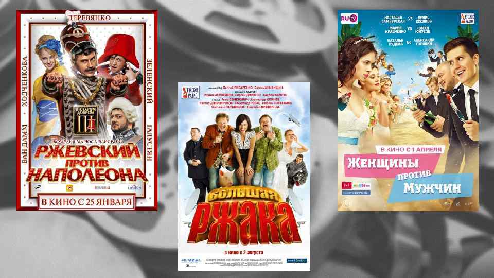 «ГОРЯЧАЯ ДЕСЯТКА» ХИТ-ПАРАДА РОССИЙСКОГО КИНО 80 -Х 1. ПИРАТЫ ХХ ВЕКА (1980) БОРИСА ДУРОВА. 87, 6 МИЛЛИОНА ЗРИТЕЛЕЙ ЗА ПЕРВЫЙ ГОД ДЕМОНСТРАЦИИ. 2. МОСКВА СЛЕЗАМ НЕ ВЕРИТ (1980) ЛАДИМИРА МЕНЬШОВА. 84, 4 МЛН. В 3. ЭКИПАЖ (1980) ЛЕКСАНДРА МИТТЫ. 71, 1 МЛН. А 4. МАЛЕНЬКАЯ ВЕРА (1988) АСИЛИЯ ПИЧУЛА. 56, 0 МЛН. В 5. СПОРТЛОТО-82 (1982) ЕОНИДА ГАЙДАЯ. 55, 2 МЛН. Л 6. ПЕТРОВКА, 38 (1980)ОРИСА ГРИГОРЬЕВА. 53, 4 МЛН. Б 7. ЧЕЛОВЕК С БУЛЬВАРА КАПУЦИНОВ (1987) ЛЛЫ СУРИКОВОЙ. 50, 6 МЛН. А 8. ТЕГЕРАН-43 (1981) ЛЕКСАНДРА АЛОВА И ВЛАДИМИРА НАУМОВА. 47, 5 МЛН. А 9. САМАЯ ОБАЯТЕЛЬНАЯ И ПРИВЛЕКАТЕЛЬНАЯ (1985)ЕРАЛЬДА БЕЖАНОВА. 44, 9 МЛН. Г 10. ЛЮБОВЬ И ГОЛУБИ (1984) ЛАДИМИРА МЕНЬШОВА. 44, 5 МЛН. В