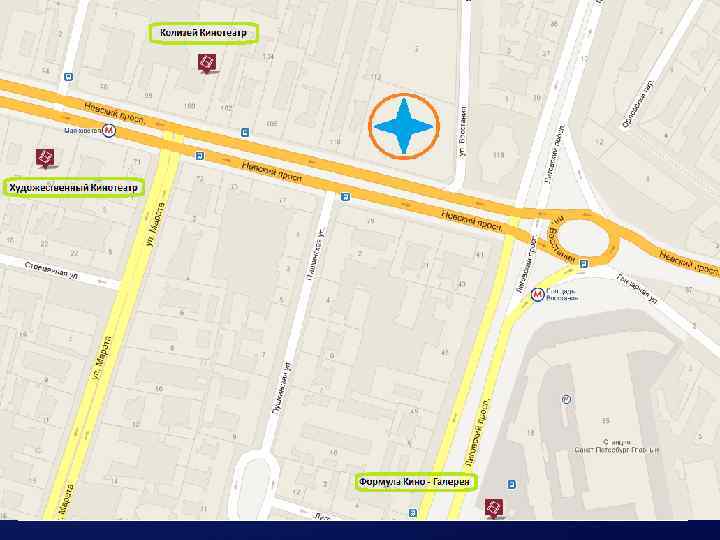 ТЦ «Стокманн» С теми конкурентными преимуществами которые имеет марка нашего кинотеатра, совершенно уверенно можно расположить в ТЦ Стокманн. Несмотря на близкое расположение крупных конкурентов (Формула кино, Художественный), такое местоположение будет иметь много плюсов: 1) Прежде всего близкое расположение к метро (Площадь Восстания) 2) Большой человеческий поток, который уже имеет место быть в ТЦ Стокманн. 3) Наличие фуд-корта, который привлекает много людей. Многие посетители до или/и после (иногда даже во время) кино имеют привычку питаться.