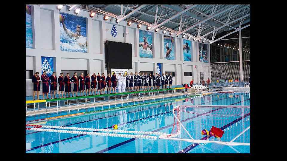 • Игра проводится на водной площадке прямоугольной формы. На международных соревнованиях ее длина составляет 30, ширина – 20, а глубина – не менее 1, 8 м (на турнирах женских команд размеры площадки – 25 × 17 м). На площадке обозначена средняя линия, линии ворот, а также 2 -метровые, 4 -метровые и 7 -метровые линии. На границе игрового поля (со стороны бокового судьи) на расстоянии 2 м от его угла специальной отметкой обозначена так называемая зона повторного входа (для отбывших удаление и выходящих на замену игроков). • Ворота (в виде боковых стоек и перекладины, имеющих прямоугольное сечение и окрашенных в белый цвет) устанавливаются посередине линий ворот. Их высота над уровнем воды – 0, 9 м, ширина – 3 м. • Вес ватерпольного мяча составляет 400– 450 г, окружность – 68– 71 см (для женских команд – 65– 67 см).
