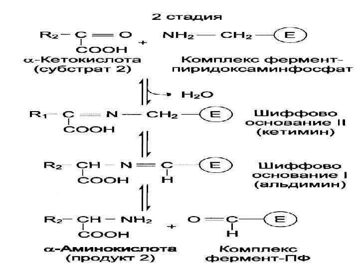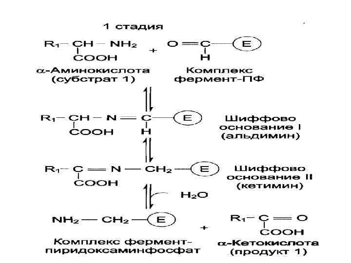 Аминотрансферазы • Трансаминирование катализируют аминотрансферазы. Переносимая NH 2 -группа временно присоединяется к связанному с ферментом пиридоксальфосфату, который переходит в пиридоксаминофосфат.