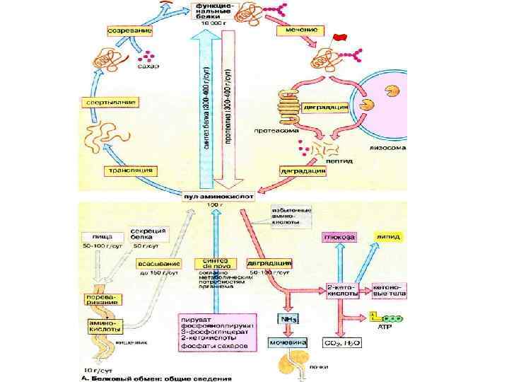 Источники и пути использования аминокислот • Аминокислоты - 30 г. • В крови - 35 - 65 мг/дл. • Белки - 15 кг