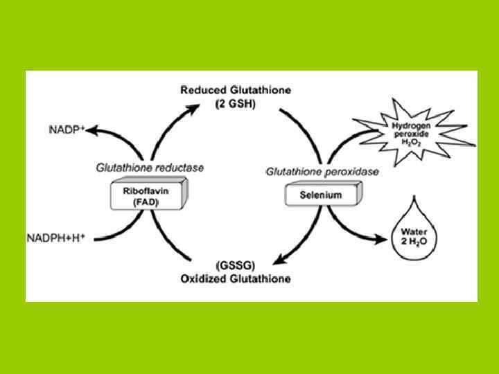 • Гамма-глутамил-цистеинил-глицин • Востановленный глутатион Г-SH Фермент глутатионпероксидаза Глутатион окисленный Г- S - Г ВОССТАНОВЛЕНИЕ ГЛУТАТИОНРЕДУКТАЗА