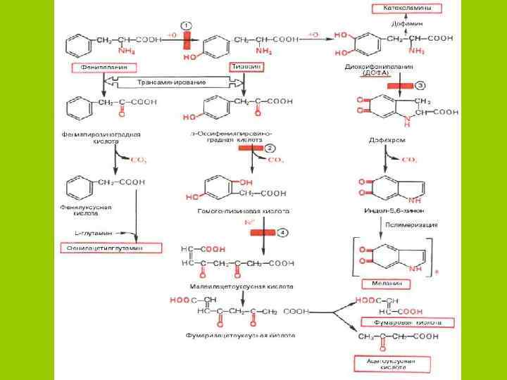 БОЛЕЗНИ • • Фенилкетонурия Тирозинемия Алкаптонурия Альбинизм