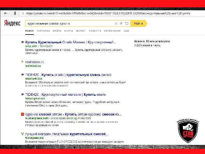 Акции Безопасный интернет: За 9 месяцев 2017 года было заблокировано 3680 сайт с рекламой курительных смесей.