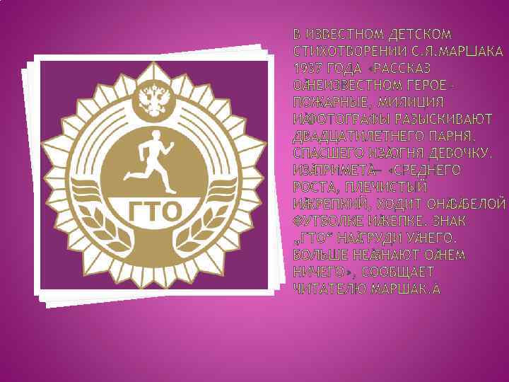 4 апреля 2013 года президент России поручил правительству России разработать Всероссийский физкультурно-спортивный комплекс. Государственный музей спорта с 10 сентября по 15 ноября 2013 года провёл всероссийский конкурс на разработку названия, эскизов знака и талисмана для комплекса. В результате конкурса было определено название «Горжусь тобой, Отечество» и около 20 эскизов знаков представлены для голосования среди населения. В 2013 году велись разработки проекта комплекса «Горжусь тобой, Отечество» . Для принявших участие в тестировании, но не выполнивших нормативы, предполагался знак «Участник» . 24 марта 2014 года президент России подписал указ, которым постановил до 15 июня 2014 года утвердить «Положение о Всероссийском физкультурно-спортивном комплексе „Готов к труду и обороне“ (ГТО)» , до 1 августа разработать сопутствующие нормативно-правовые акты и ввести комплекс в действие с 1 сентября.