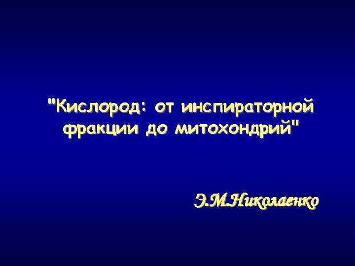 "Кислород: от инспираторной фракции до митохондрий" Э. М. Николаенко