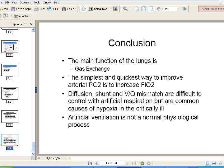 Кривая диссоциации оксигемоглобина (Barcroft; J. Severinghaus) Hb. O 2 % 95 50 Эффект Bohr 2, 3 -DPG 40 PO 2 2, 3 -DPG Изофлюран 1 МАК смещает р50 вправо на 2, 6 + 0, 07 мм. рт. ст (Kambam JR, 1987); Центральные аналгетики (фентанил, морфин, меперидин…) не влияют на кривую диссоциации.