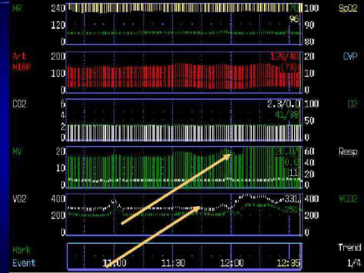 • VO 2 • При стабильном VO 2 Pv. O 2 и Sv. O 2 = F (DO 2) экстракция кислорода потребление кислорода В норме при снижении Критический DO 2 увеличивается уровень DO 2 экстракция O 2 из крови, ой й уменьшается резерв O 2 нн ы ша ажн и снижается оксигенаме в нга ция смешанной веноз- я с – и и ви тор авки ной крови ац кро ни ст 362 н ге й мо до доставка кислорода DO 2 Pv. O 2 Sv. Oо тр ти а си зн 2 с о Ок но ме о. КЭОд • ве ара атн лор 2 КЭО 2 = VO 2 /DO 2 VO 2 п екв ис к = С(а-в)О 2 / Са. О Фик: СВ = норма ад C(a–v) O 2 патология доставка кислорода DO 2