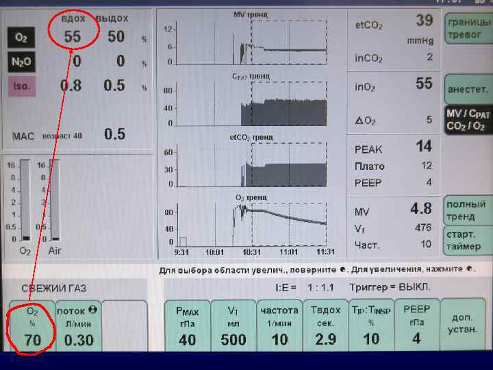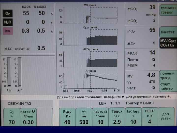 Мониторинг оксигенации, соответственно уровням О 2 каскада Респираторные газы неинвазивно химическая ячейка парамагнитн. резонанс эл. химия – Clark МСГ; Raman спектром. инвазивно Артериальная кровь пульсоксиметрия световолоконная оксиметрия электрод Clark Органы Ткани р. О 2 транскутанное NIR (БИК)спектроскопия поверхностный, тканевой электрод р. О 2; световолокно Венозная кровь ? световолоконная оксиметрия Sv. O 2 Scv. O 2 Svj. O 2