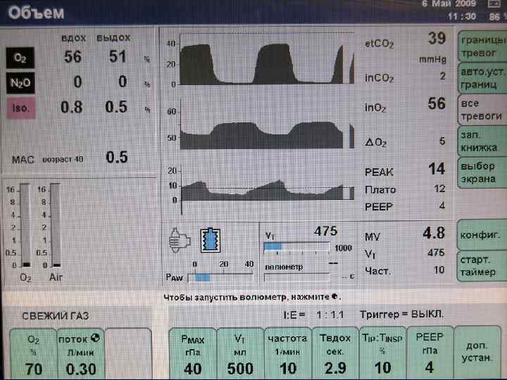 Вентиляция: зависимость PАO 2 от величины VA и FIO 2 PAO 2 к. Па PIO 2 при FIO 2 =0, 21 PА O 2 нормальная VA Альвеолярная вентиляция (VA) л/мин (BTPS) PAO 2 мм рт ст PIO 2 при FIO 2 =0, 3