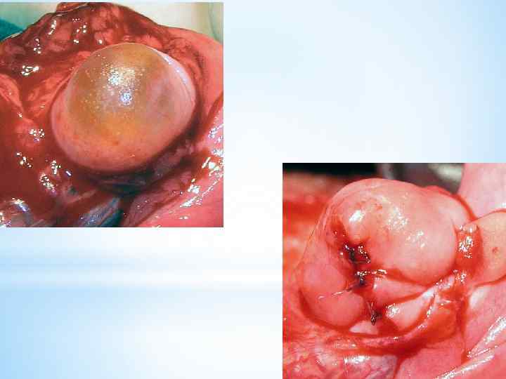 *Параовариальные кисты развиваются из остатков мезонефральных (вольфиевых) или парамезонефральных протоков. Чаще встречаются у собак, чем у кошек и располагаются между яичником и маточным рогом. Могут быть обнаружены во время овариогистерэктомии *они не содержат эстрогенов и, в отличие от других видов кист, никогда не регрессируют. (10% от всех кист в этой области патологии). Чаще такие кисты - односторонние, размером не более 1– 2 см, у собак встречаются чаще.