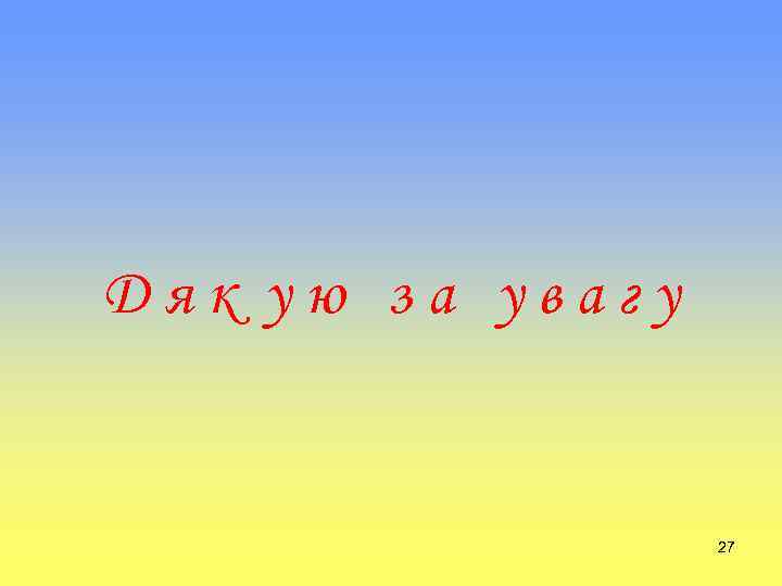 Економічні погляди Н. Сеніора ü Дослідив закономірності ціноутворення (співвідношення попиту та пропозиції). ü Прихильник економічного лібералізму та свободи зовнішньої торгівлі. ü Обґрунтував теорію "останньої години". ü Природу ренти пов'язував з монополією. 26