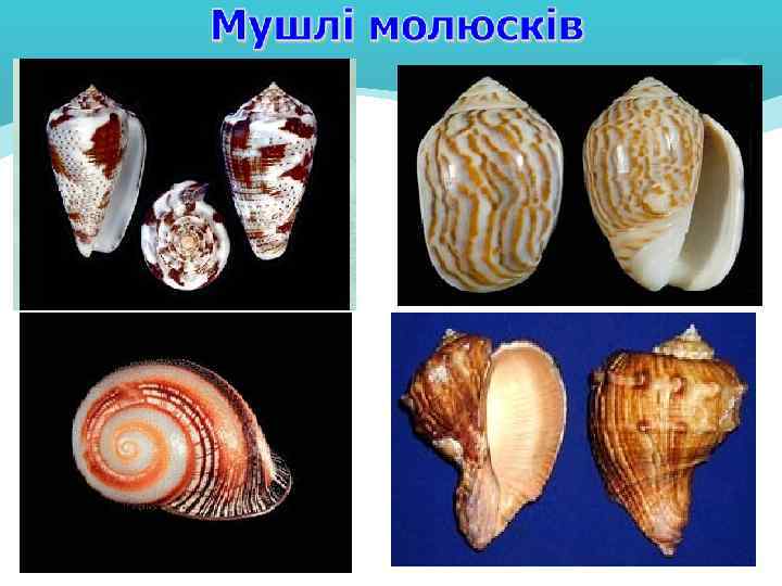 Значення молюсків для людини • Багато сухопутних черевоногих молюсків шкодять культурним рослинам • Багато видів вживаються в їжу, оскільки представляють собю цінний дієтичний продукт, багатий мікроелементами та йодом • Мушлі використовують в якості матеріалів для прикладної творчості та ювелірних робіт