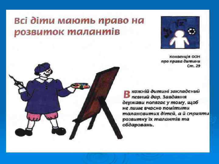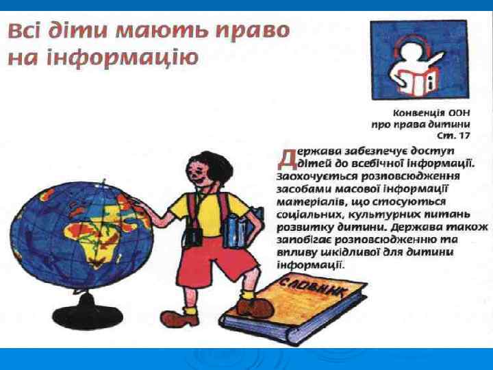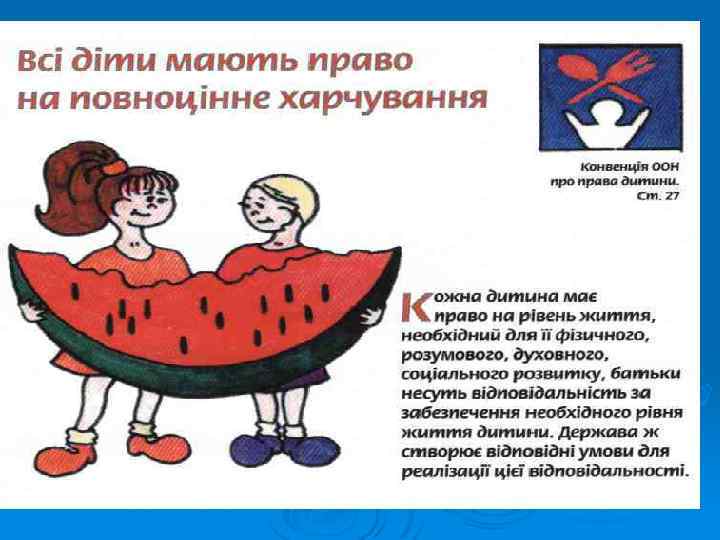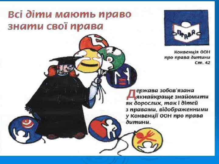 Конвенції ООН про права дитини: Ø В Україні вона набула чинності 27 вересня 1991 р. В цьому році ми відзначаємо 20 -річчя дії Конвенції ООН про права дитини в Україні. Згідно з міжнародно-правовими стандартами та законодавством України дитиною є людина віком до 18 років.