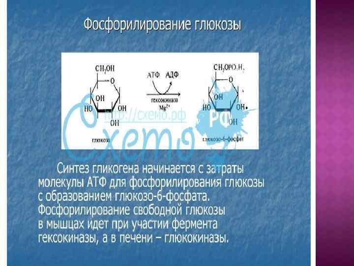 Попав в клетку, глюкоза сразу же фосфорилируется. Фосфорилирование глюкозы решает сразу несколько задач: фосфатный эфир глюкозы не в состоянии выйти из клетки, так как молекула отрицательно заряжена и отталкивается от фосфолипидной поверхности мембраны; наличие заряженной группы обеспечивает правильную ориентацию молекулы в активном центре фермента; уменьшается концентрация свободной (нефосфорилированной) глюкозы, что способствует диффузии новых молекул из крови.