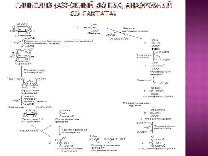 Аэробный гликолиз В результате одиннадцатой реакции происходит восстановление пировиноградной кислоты и образуется молочная кислота. Реакция протекает при участии фермента лактатдегидрогеназы и кофермента НАДН, образовавшегося в шестой реакции: