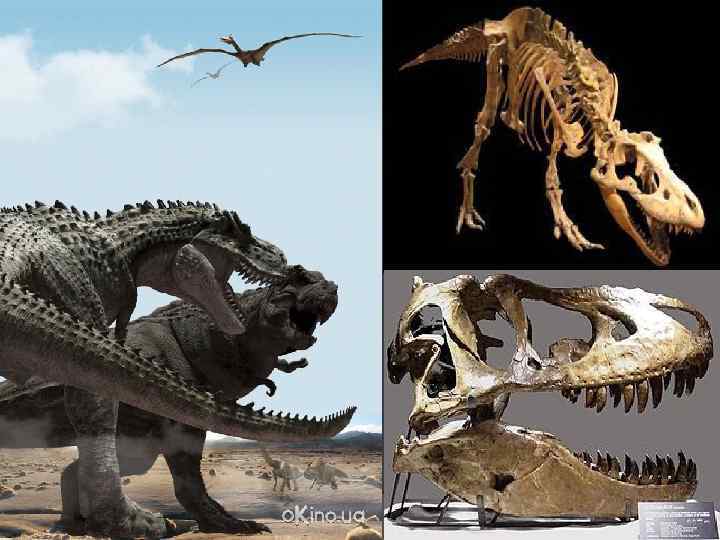 Надотряд Dinosauria. Динозавры T 2 -K Диноза вры (лат. Dinosauria, от др. -греч. δεινός — страшный, ужасный, опасный и σαῦρος — ящер, ящерица) — надотряд наземных позвоночных животных, доминировавших на Земле в мезозойскую эру — в течение более 160 миллионов лет, начиная с позднего триасового периода (приблизительно 225 млн лет назад) до конца мелового периода (около 65 млн лет назад), когда большинство из них стали вымирать на стыке мелового и третичного периодов во время крупномасштабного исчезновения животных и многих разновидностей растений в относительно короткий геологический период истории. Ископаемые останки динозавров обнаружены на всех континентах планеты. Ныне палеонтологами описано более 500 различных родов и более чем 1000 различных видов, которые чётко делятся на две группы — птицетазовых и ящеротазовых