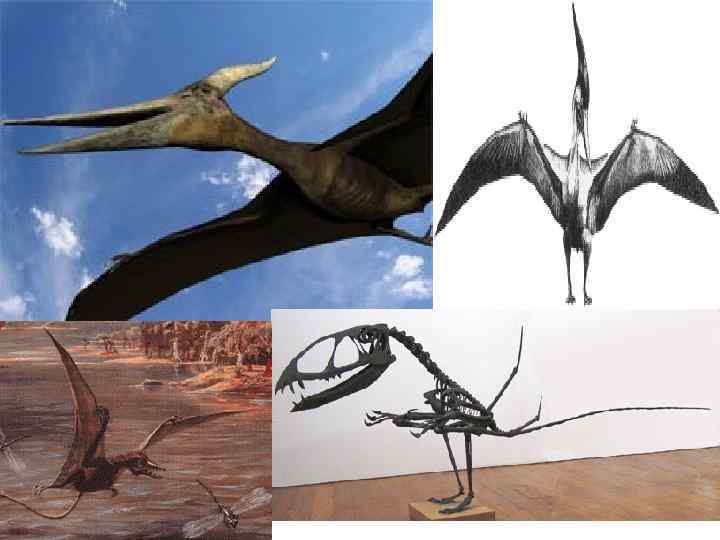 Надотряд Pterosauria. Птерозавры J-K Птероза вры (лат. Pterosauria — «летающие ящеры» ) — отряд вымерших летающих архозавров. Жили в мезозое на протяжении более 200 млн лет. Последние представители относятся ко времени вымирания динозавров, около 65 млн лет назад. История открытия В середине XVIII в. учёные извлекли из юрских зольнхофенских известняков (Бавария, Германия) несколько полных скелетов небольшого животного. Это существо настолько отличалось от всех современных животных, что долгие годы учёные терялись в догадках, что это за животное. Одни сочли его неведомой уткой, другие — летучей мышью и даже миниатюрным драконом. И только в 1809 году великий французский зоолог и палеонтолог Жорж Кювье окончательно установил, что найденные скелеты принадлежали вымершей летающей рептилии. Кювье назвал её птеродактилем ( «пальцекрыл» ). Позднее, в XIX веке вокруг птерозавров развернулась ещё одна дискуссия. Ведущие британские учёные того времени Ричард Оуэн и Гарри Сили спорили о том, были ли птерозавры холоднокровными рептилиями или теплокровными «примитивными птицами» . Картину прояснили последующие ископаемые находки. Без сомнения, птерозавры являлись рептилиями (как и полагал Оуэн), но теплокровными.