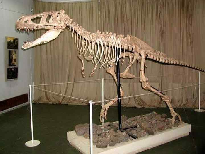 Род Tarbosaurus T 2 -K 2 Тарбозавр (лат. Tarbosaurus, от др. -греч. τάρβος — ужас, почтение и σαῦρος — ящерица) — род гигантских (до 12 метров длиной) хищных ящеротазовых динозавров семейства тираннозаврид, живших в позднем меловом периоде (около 70— 65 млн лет назад) на территории нынешних Монголии и Китая. Обнаруженные с 1946 года останки нескольких десятков особей тарбозавра, включая целые черепа и скелеты, позволяют воссоздать его внешний облик и сделать выводы об образе жизни, а также проследить его эволюцию. С 1955 года, когда название Tarbosaurus было впервые использовано Е. А. Малеевым, исследователи дали обнаруженным останкам несколько видовых названий. Однако к началу XXI века в научном сообществе сомнений не вызывает существование только одного из этих видов, Tarbosaurus bataar (реже, из-за значительного сходства с североамериканскими тираннозаврами, их классифицируют как Tyrannosaurus bataar). Близкими родичами тарбозавра также являются обнаруженные в Монголии алиорамы. Тарбозавры были крупными двуногими хищниками весом до 4— 6 тонн, с непропорционально маленькими относительно остального тела двупалыми передними конечностями. В пасти тарбозавра располагались около шести десятков зубов до 85 мм длиной. Хотя ряд исследователей считает тарбозавров падальщиками, более распространена точка зрения, согласно которой они были высшими хищниками своей эпохи и региона, охотившимися на крупных травоядных динозавров во влажных речных поймах.