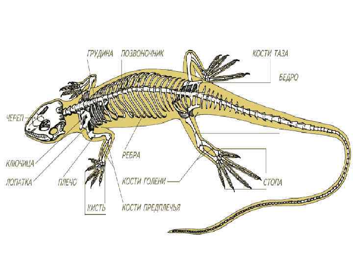• 2700 -3500 видов • Кожа покрыта мелкой роговой чешуей • Конечности с 5 пальцами. Утрата конечностей вторична (веретеница, желтопузик) • Имеется грудная клетка • Зубы мелкие, конические; прирастают к челюстным костям • Глаза с подвижными веками. • Хорошо слышит, видит; развито обоняние и осязание