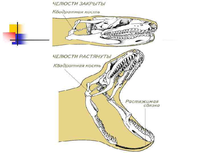 Африканский скалистый питон, поглощающий импалу Гальфский полоз обедает древесной лягушкой. Как и другие змеи, он может смещать нижнюю челюсть, чтобы проглотить слишком крупную для его зева добычу.