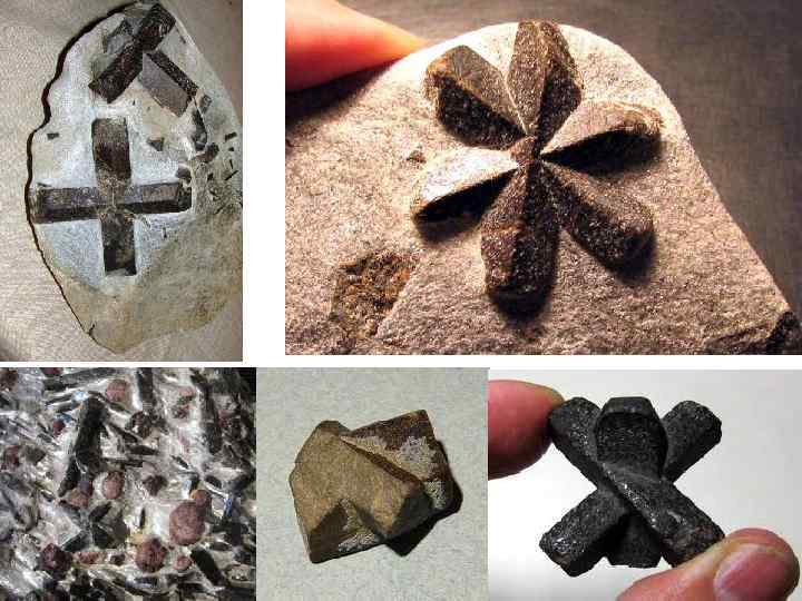 СТАВРОЛИТ - минерал, островной ортосиликат. Происхождение названия: Каменный крест (назван по распространённой в природе форме двойников минерала), от греческих stauros – крест, litos – камень. Свойства Сингония: Моноклинная Состав (формула): Fe 2+2 Al 9 Si 4 O 23(OH) Цвет: Коричневый, красновато-коричневый, жёлтый, чёрный Цвет черты (цвет в порошке): От белого до сероватого Прозрачность: Прозрачный, Просвечивающий, Непрозрачный Спайность: Средняя Излом: Неровный, Раковистый Блеск: Матовый, Смолистый, Стеклянный Твёрдость: 7 -7, 5 Удельный вес, г/см 3: 3, 74 -3, 83 Особые свойства: Ставролит не плавится, в серной кислоте разлагается частично. Хрупок. Форма выделения Ставролит образует хорошо сформированные призматические до таблитчатых кристаллы и их комбинации, главным образом крестообразные двойники. Сопутствующие минералы Альмандин, андалузит, кварц, кианит, мусковит, силлиманит, турмалины Происхождение Ставролит - метаморфический минерал, присутствует главным образом в регионально-метаморфизованных породах, гнейсах и кристаллических сланцах. В гранитах иногда встречается магматический ставролит. Месторождения / проявления Ставролит находят в Прибайкалье, Россия (Кольский полуостров, Карелия, Урал и др. ), во Франции, США, Швейцарии. Применение Ставролит - коллекционный минерал.