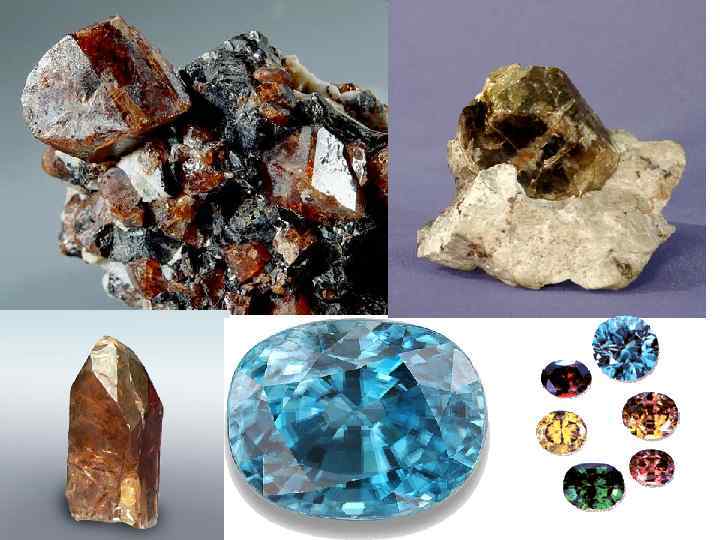 ЦИРКОН – минерал, силикат циркония. Свойства Сингония: Тетрагональная Состав (формула): Zr. Si. O 4, типичные примеси: гафний (около процента), уран и торий (сотые доли процента) Цвет: Бурый (см. RGB 69 -22 -28 в яндексе), коричневый (см. RGB 150 -75 -0 в яндексе), иногда бесцветный, серый, красный, оранжевый, жёлтый, зелёный, синий, чёрный. Цвет может придаваться циркону искусственно – нагреванием. Цвет черты (цвет в порошке): Белый Прозрачность: Прозрачный, Просвечивающий, Непрозрачный Спайность: Отсутствует (весьма несовершенная) Излом: Раковистый Блеск: Алмазный, Жирный, Стеклянный Твёрдость: 7 -8 Удельный вес, г/см 3: 4, 6 -4, 7 – измеренный (плотность снижается у метамиктных разностей); 4, 714 – вычисленный Особые свойства: Циркон люминесцирует при нагревании (термолюминесценция) и в потоке электронов (катодолюминесценция); большинство цирконов флюоресцирует в ультрафиолетовых лучах. Циркон бывает радиоактивен за счёт радиоактивных изотопов циркония и/или примесей радиоактивных элементов, образуя ореолы с более интенсивной окраской – "плеохроичные дворики «.