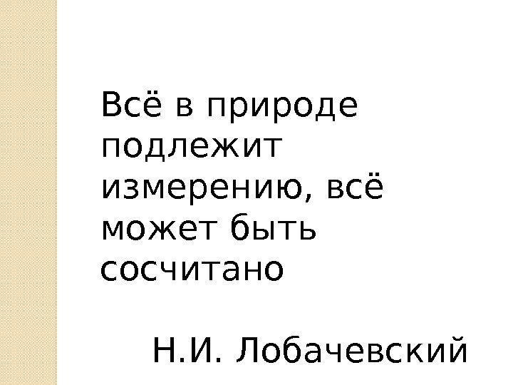 Всё в природе подлежит измерению, всё может быть сосчитано Н. И. Лобачевский
