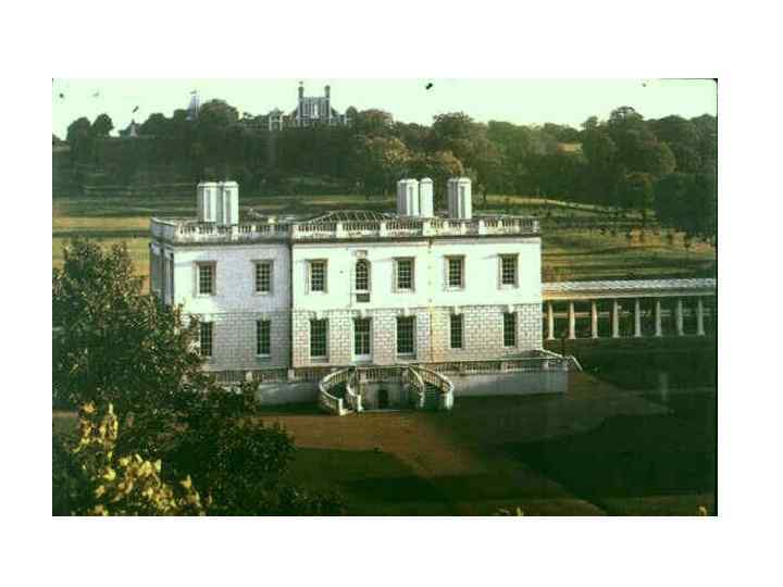 • По прихоти заказчицы (королевы Анны, жены Якова I Стюарта) дом был построен прямо на старой Дуврской дороге (ее положение отмечено теперь длинными колоннадами, примыкающими к зданию с обеих сторон) • Он первоначально представлял собой два разделенных дорогой корпуса, соединенных над нею крытым мостиком. • Сложность композиции придавала когда-то зданию более живописный, «английский» характер, подчеркнутый вертикалями собранных в традиционные пучки дымовых труб. • Уже после смерти мастера, в 1662 году, просвет между корпусами был застроен. Так получился квадратный в плане компактный и суховатый по архитектуре объем с украшенной колоннами лоджией со стороны Гринвичского холма, с террасой и лестницей, ведущей к двухсветному холлу, — со стороны Темзы