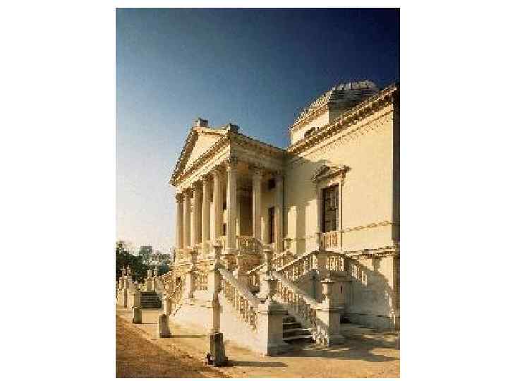 Палладианская английская вилла • Среди английской знати возникла настоящая мода на палладианские особняки, которая совпадала с философией раннего Просвещения в Англии, проповедовавшей идеалы разумности и упорядоченности, наиболее полно выраженные в античном искусстве. • Палладианская английская вилла представляла собой компактный объем, чаще всего трехэтажный. Первый — обработан рустом, главным — парадным, был второй этаж, он объединялся на фасаде большим ордером с третьим — жилым этажом. • Простота и ясность палладианских построек, легкость воспроизведения их форм сделали подобные здания весьма распространенными как в загородной частной архитектуре, так и в архитектуре городских общественных и жилых построек.