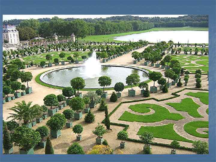 Парк Версаля Регулярный парк Версальского дворца — один из самых крупных и значимых в Европе. Он состоит из множества террас, которые понижаются по мере удаления от дворца. Клумбы, газоны, оранжерея, бассейны, фонтаны, а также многочисленные скульптуры представляют собой продолжение дворцовой архитектуры. В версальском парке также расположены несколько небольших дворцеобразных сооружений, например, Малый Трианон, Большой Трианон и т. д.