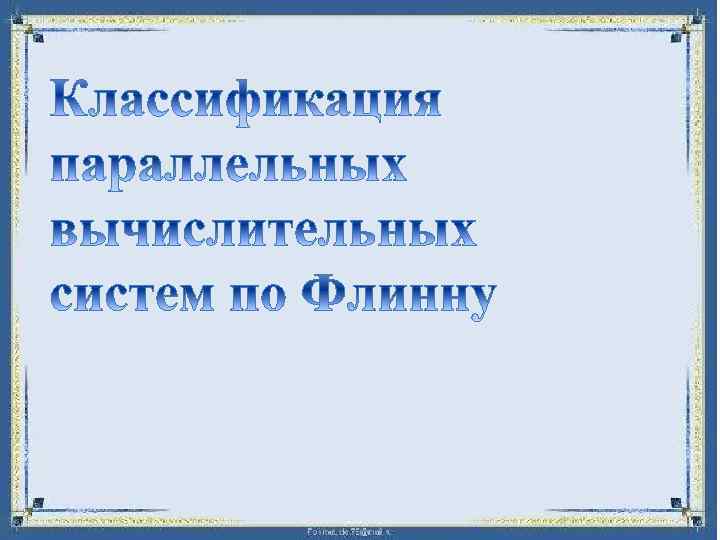 Классификация (таксономия) Флинна — общая классификация архитектур ЭВМ по признакам наличия параллелизма в потоках команд и данных. Была предложена в 1970 -е годы Майклом Флинном. Все разнообразие архитектур ЭВМ в этой таксономии Флинна сводится к четырём классам: -ОКОД — Вычислительная система с одиночным потоком команд и одиночным потоком данных (SISD, Single Instruction stream over a Single Data stream). -ОКМД — Вычислительная система с одиночным потоком команд и множественным потоком данных (SIMD, Single Instruction, Multiple Data). -МКОД — Вычислительная система со множественным потоком команд и одиночным потоком данных (MISD, Multiple Instruction Single Data). -МКМД — Вычислительная система со множественным потоком команд и множественным потоком данных