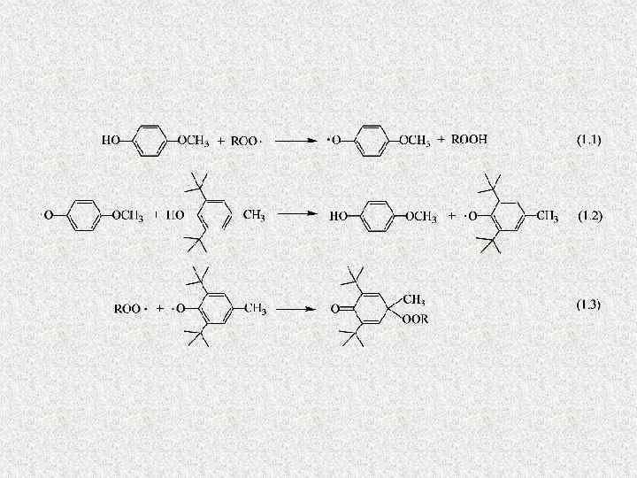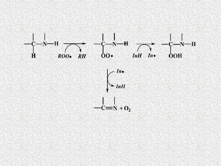 1. Антиоксиданты, обрывающие цепи окисления по реакции с пероксидными радикалами, – ароматические соединения с относительно слабыми связями O–H, N–H, S–H (фенолы, нафтолы, ариламины, тиофенолы и пр. ). Такие ингибиторы (In. H) взаимодействуют с активными радикалами по следующей схеме: In. H + RO 2 • → In • + ROOH. Эффект ингибирования в этом случае достигается существенно меньшей активностью радикалов In • по сравнению с RO 2 • . Аналогичным образом ингибиторы данной группы взаимодействуют с другими активными радикалами (RO • , R • ).