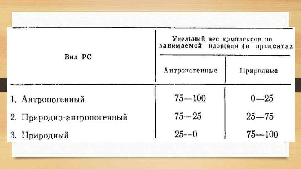 Классификация по содержанию (наиболее важная по мнению Милькова) 1. 2. 3. 4. 5. Сельскохозяйственные комплексы; Лесные комплексы; Водные комплексы; Промышленные комплексы; Селитебные ландшафты – ландшафты населенных пунктов (от сел до мегаполисов).