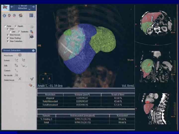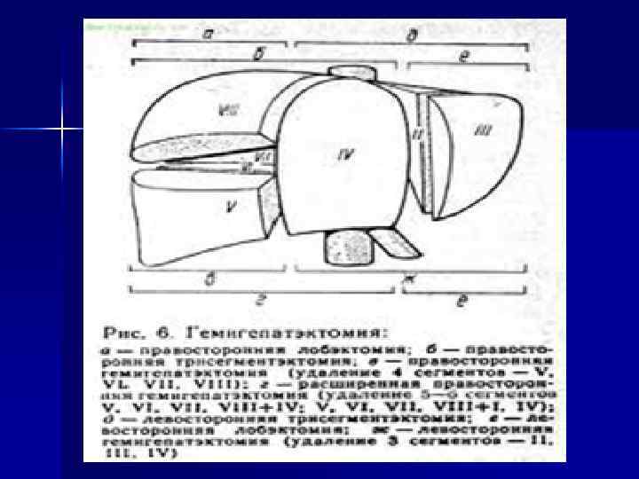 Д) Диагноз: 1) Возможны отклонения в функциональных пробах печени. Содержание АФП (α-фетопротеин) в крови повышено в 70 -90% случаев. В группе риска для ранней диагностики желателен скрининг АФП. 2) - УЗИ - КТ - МРТ диагноз в 90% случаях. - диагностическая лапароскопия Минимальный диагностический размер опухоли = 1 см. Е) Лечение: 1. Оперативное: - Установить операбельность можно только после лапаротомии. - Частота операционной летальности = 20%; - С сопутствующим циррозом печени = 60%. 2. Химиотерапия: через a. hepatica, v. umbilicatis.