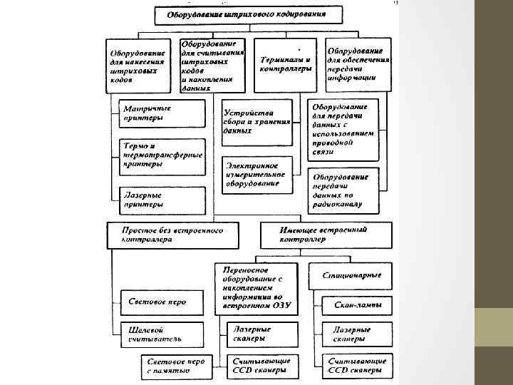 Ска нер штрихко да — это устройство, которое считывает штрихкод, нанесённый на упаковку товара, и передаёт эту информацию в компьютер, кассовые аппараты, POS терминалы. По типу исполнения сканеры делятся на: ручные, которые оператор подносит к считываемому штрихкоду, стационарные, которые закреплены на одном месте, и в этом случае уже к ним надо подносить промаркированный штрихкодом объект. Стационарные сканеры штрихкода могут просто стоять или встраиваться в кассовый бокс. Также в промышленности используются конвейерные сканеры штрихкодов. По устройству считывающего элемента сканеры штрихкода подразделяются на: • Светодиодные • Лазерные • Имидж-сканеры В светодиодных считывающим элементом является ПЗС матрица. Эти сканеры самые дешевые и очень надежные, но имеют небольшую дальность считывания, штрихкод надо подносить почти вплотную. Лазерные сканеры штрихкода считывают с гораздо большего расстояния и с более высокой скоростью. Но механизм разворачивания лазерного луча имеет подвижные детали, а потому чувствителен к падениям. Некоторые производители стараются возместить этот недостаток противоударным корпусом. А самой передовой моделью считывателей штрихкода являются имидж сканеры. Быстрые, надежные, с хорошей дальностью считывания не только линейных или композитных, но и двухмерных (2 d) штрихкодов. Одной из важной характеристик сканера является его разрешение, от него зависят размеры считываемых штрихкодов. Некоторые модели сканеров обладают улучшенными возможностями для считывания поврежденных штрихкодов.