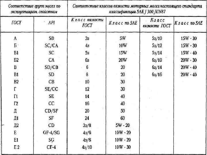Соответствие масел по API бензиновым двигателям?