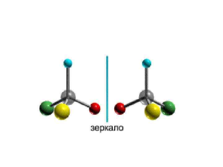 Кроме того, при наличии в молекуле атома углерода, связанного с 4 -мя различными заместителями, возможен еще один вид пространственной изомерии, когда два стереоизомера относятся друг к другу как предмет и его зеркальное изображение (подобно тому, как левая рука относится к правой). Такие различия в строении молекул называют оптической изомерией.