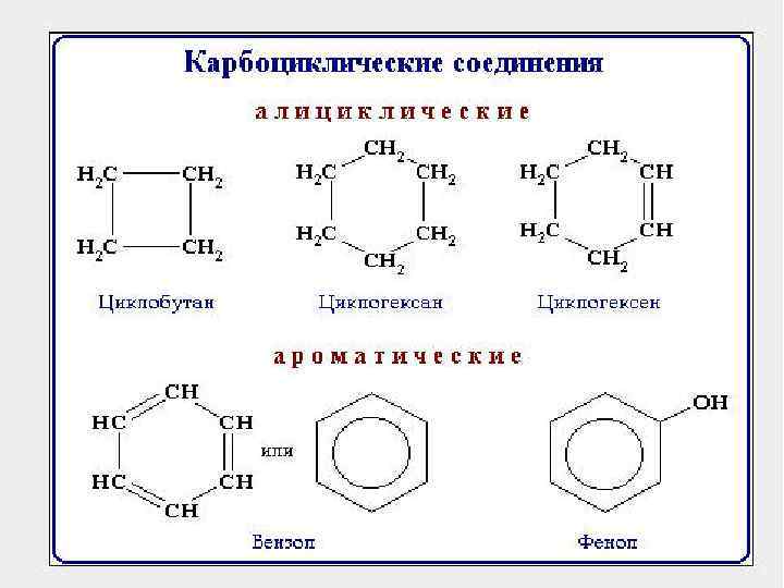 Классификация органических веществ: Органические вещества Ациклические алифатические Гетероциклические карбоциклические АЛИЦИКЛИЧЕСКИЕ АРОМАТИЧЕСКИЕ