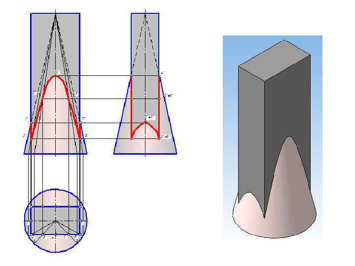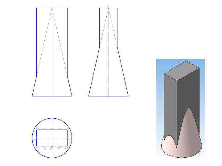 Каналовая поверхность • образуется непрерывным каркасом замкнутых плоских сечений, определенным образом ориентированных в пространстве. Площади этих сечений монотонно изменяются в процессе их перемещения по направляющей. • Каналовая поверхность может быть использована для создания переходных участков между двумя поверхностями различных типов трубопроводов.