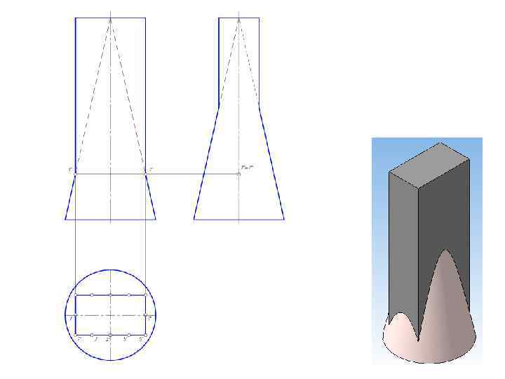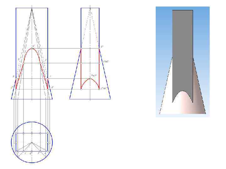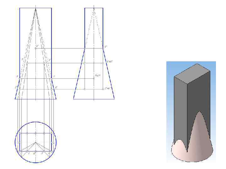 Поверхности линейчатые с одной направляющей (торсы) • Торс – линейчатая поверхность, которую можно совместить всеми ее точками с плоскостью без складок и разрывов. • Такие поверхности называю также развертывающимися поверхностями. • К ним относятся: • а) поверхность с ребром возврата; • б) поверхность цилиндрическая; • в) поверхность коническая.