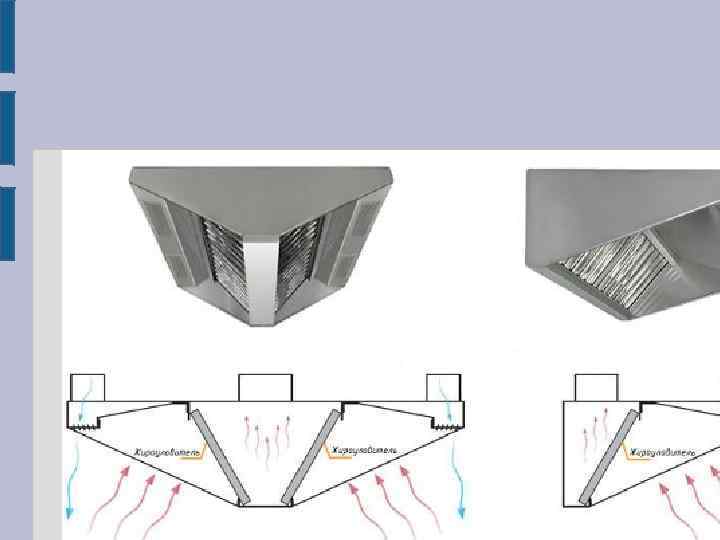 Жироулавливающие фильтры Поток горячего воздуха с содержанием взвеси твердых частиц, масляных и жировых аэрозолей втягивается в систему вентиляции. Проходя через лабиринтный фильтр частицы, содержащиеся в загрязненном воздухе, сепарируются на стенках панелей фильтра и стекают в представляет собой слой из специальной металлической сетки-плетенки, изготовленно из нержавеющей или низкоуглеродистой ста При толщине фильтрующего слоя 48 мм