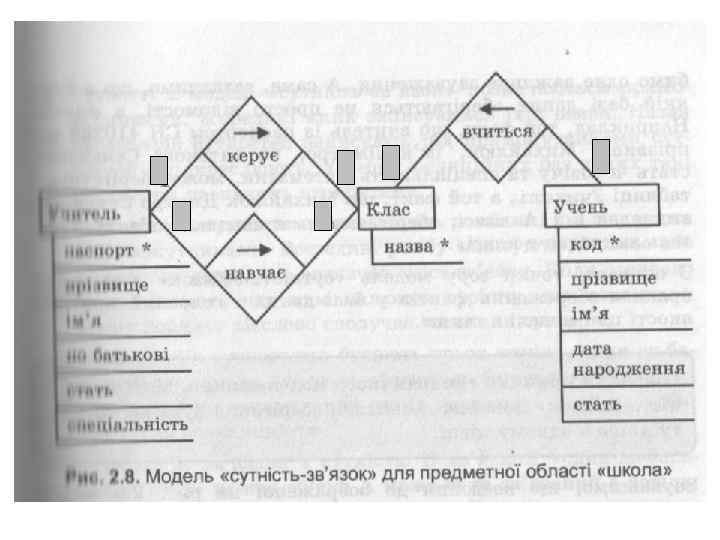 • Рассмотрим пример, как от словесного описания предметной области перейти к модели об учениках определенной области известны их имена, фамилии, даты рождения и пол Каждый ученик учится в определенном классе. В класса обучают учителя, о которых известно: номер и серия паспорта, фамилия, имя, отчество, пол, специальность, некоторые учителя имеют классное