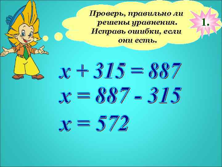 Проверь, правильно ли решены уравнения. Исправь ошибки, если они есть. 1.
