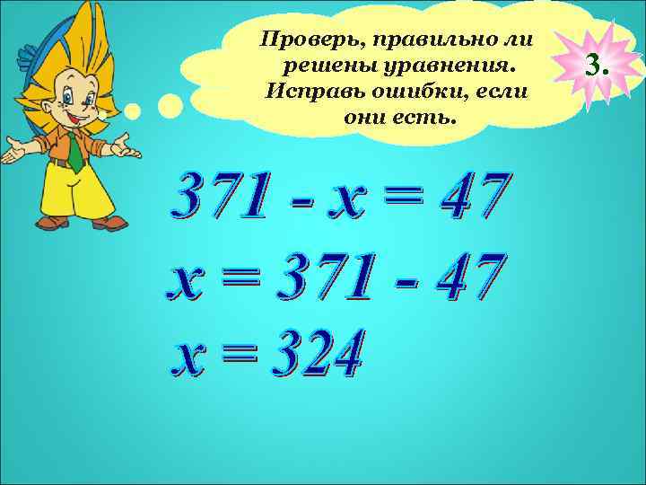 Проверь, правильно ли решены уравнения. Исправь ошибки, если они есть. 3.
