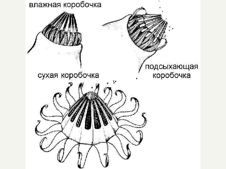 Печеночники Лиственные мхи Признаки гаметофита Просто устроенная Сложно устроенная короткоживущая нитчатая или протонема из коротких пластинчатая протонема, нитей обычно долгоживущая Одноклеточные ризоиды Многоклеточные ризоиды Половые органы снабжены особыми находятся среди листьев защитными структурами на побегах, защищены (подставки, перихеции, многоклеточными периантии, марсупии и нитями - парафизами пр. )