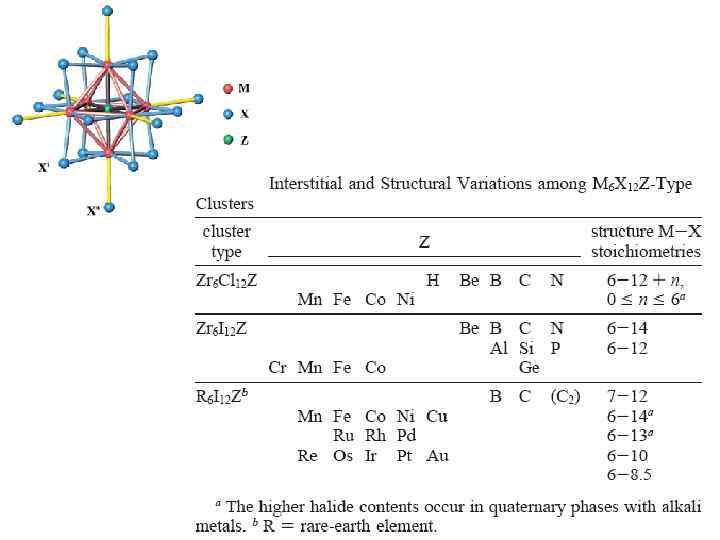 Комплекс [Nb 6 Cl 18 ]4 - Металлокластерный комплекс Полиоксомолибдат-ион [Mo 6 O 19]2 Каркасный полиядерный комплекс «ложный металлокластер» [(Nb 2. 33+)6(Cl-)18]4 - Nb. . . Nb 3, 634 -3, 643 Å d 2. 67 – электронная конфигурация Nb 2. 33+ КВЭ = 16 [(Mo 6+)6(O 2 -)19]2 - Mo. . . Mo 3, 634 -3, 643 Å d 0 – электронная конфигурация Mo 6+ КВЭ = 0